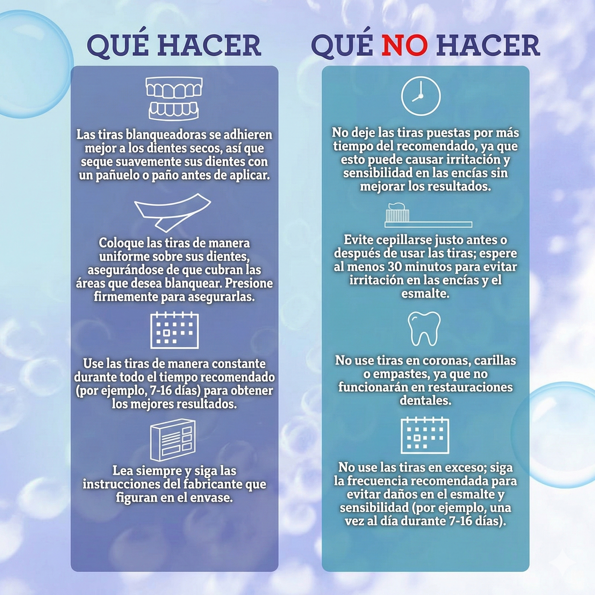 Sonría con confianza: después de retirar las tiras, deséchelas y enjuague bien la boca para eliminar cualquier residuo. ¡Disfrute de una sonrisa más brillante!